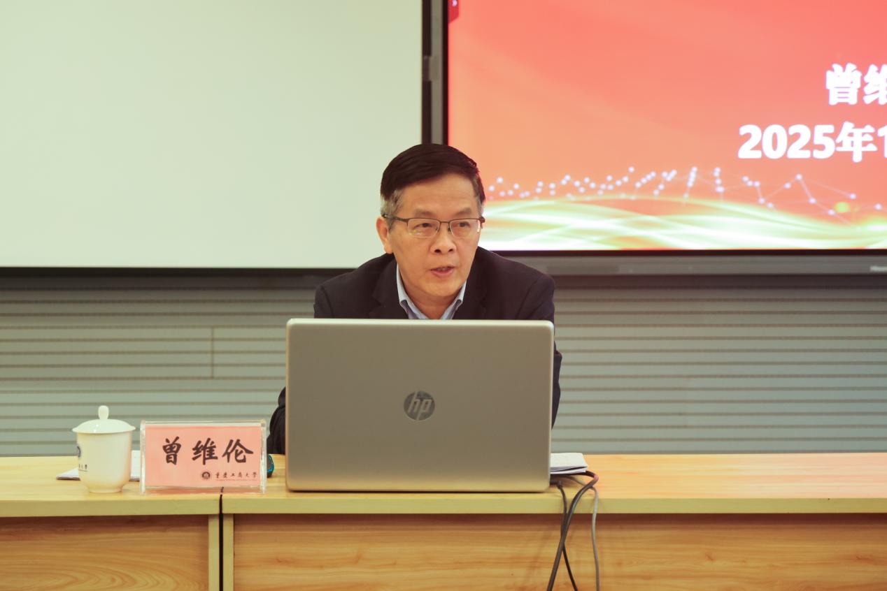 12月3日下午,重庆工商大学学习贯彻党的二十届四中全会精神校园宣讲小队队长、党委书记曾维伦在启智楼80412C会议室,为党委宣传部与马克思主义学院师生代表宣讲党的二十届四中全会精神。